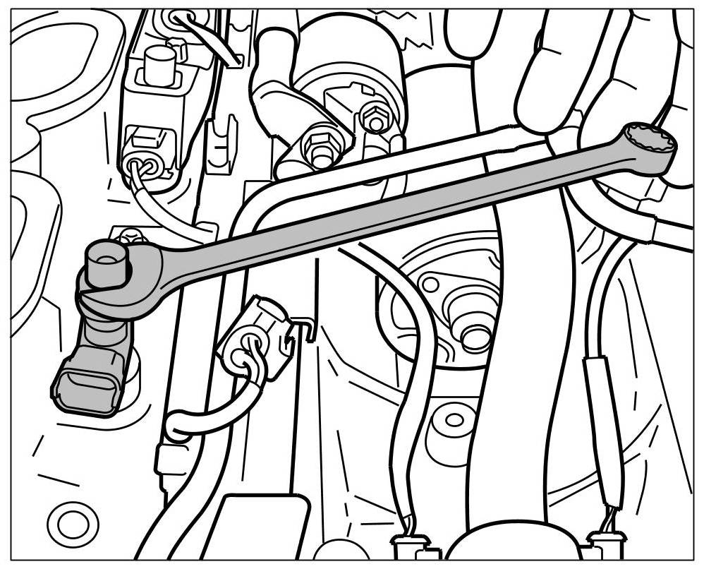 6. Perform a test drive. Make sure the high-pressure pipes and threaded joints are sealed properly (visual inspection with engine running).