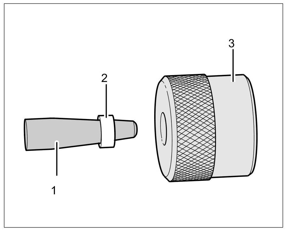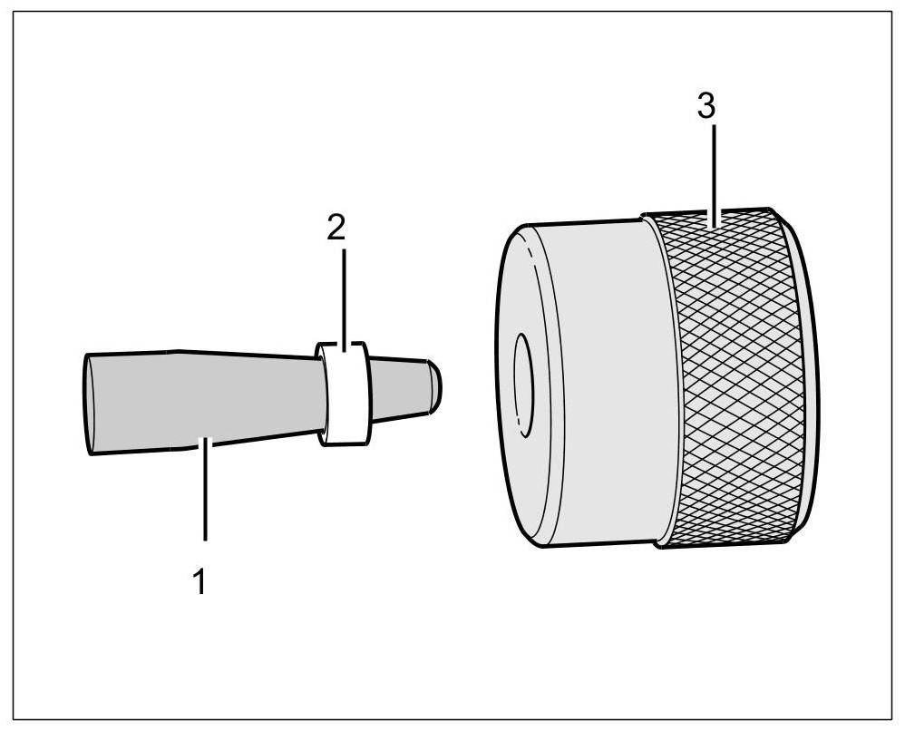 5. Turn assembly sleeve no. 6 -3- around (knurled side now no longer facing sealing ring), and push sealing ring -2- onto the end of mounting cone no. 5 -1-.