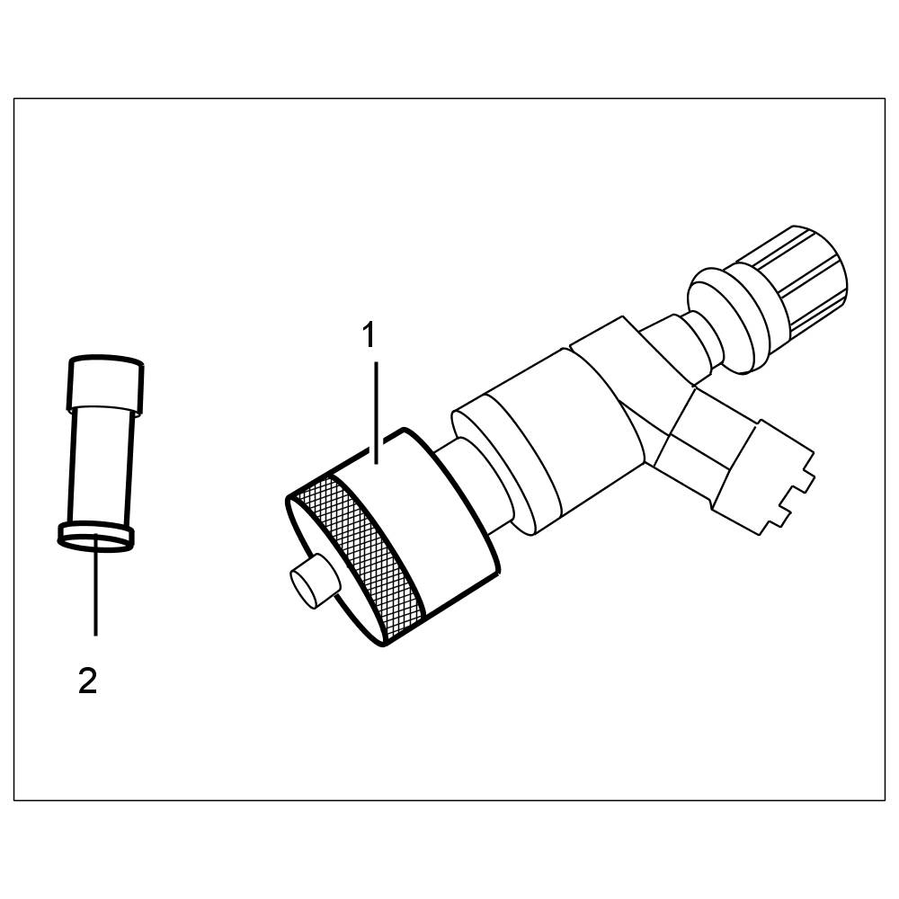 8. The injector should now be installed immediately, as the Teflon sealing ring will soon start to swell (prevents leaks when installed). Otherwise leave calibrating sleeve no. 8 -1- on the Teflon sealing ring for longer or fit calibration cap (transport sleeve for new injectors) -2-.