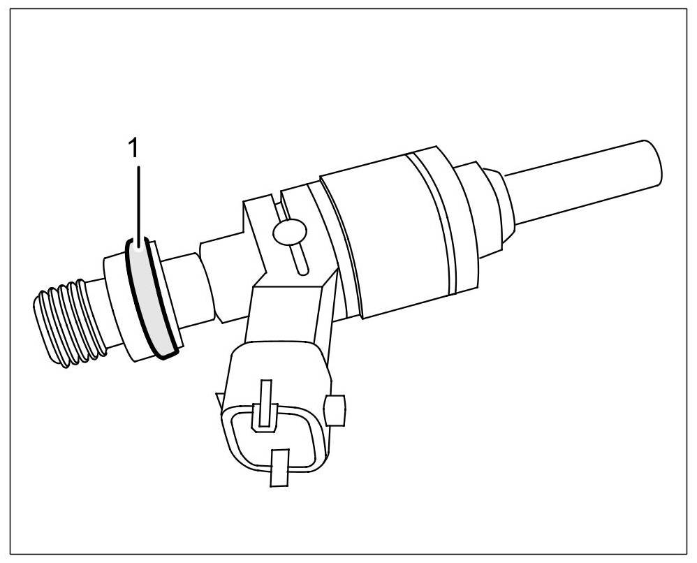 2. Clean fuel injector carefully using a plastic brush (or cloth) and acetone or solvent naphtha. Hold Teflon sealing ring gently using a pointed-nose pliers and carefully pull off Teflon sealing ring -1-. Do not scratch valve body.