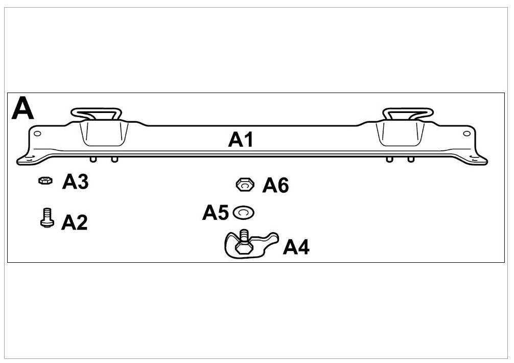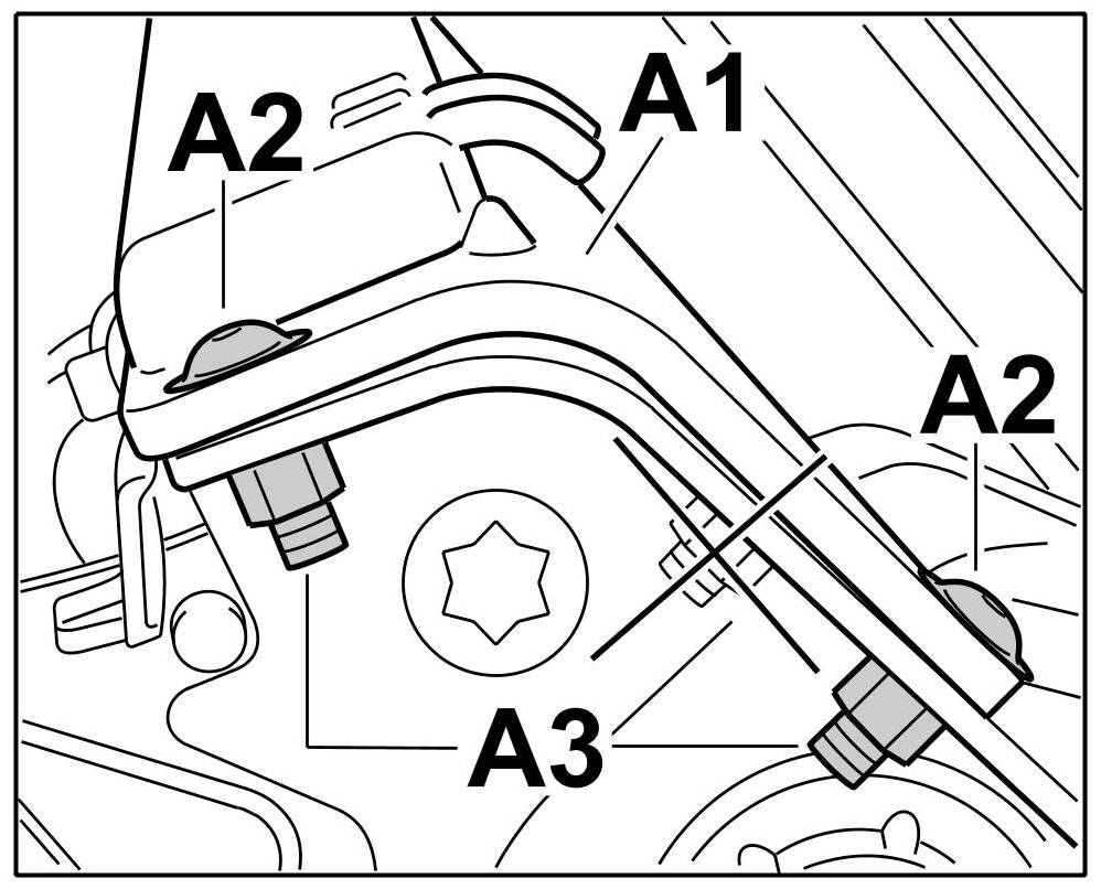 3.2.2. Fit the bar ( -item A1- ) from behind and secure with an M5 x 16 screw ( -item A2- ) and self-locking nuts ( -item A3- ) on both sides. => Tightening torque: 5 Nm (3.5 ftlb.)+/-0.5 Nm (+/-0.5 ftlb.)
