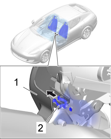 2.2. Disengage the two restraining straps on the rear of the seat at the bottom ( -arrows- ).