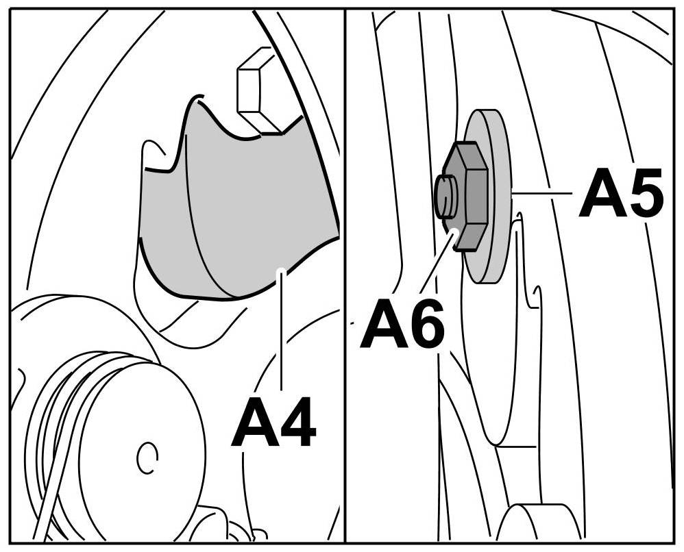 Remove M5 nut (low type, -item A6- ) and plastic washer ( -item A5- ).