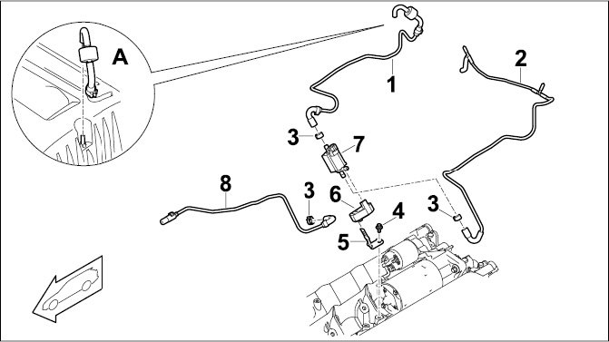 A - View A; connection of pressure line to intake-air distributor