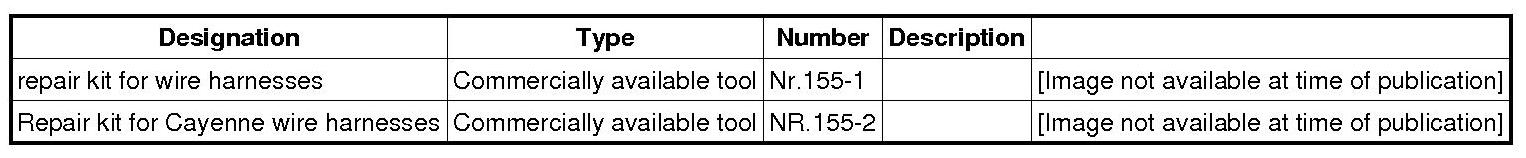 The procedure for stripping insulation from, crimping, and shrinking/insulating the electric lines must be complied with and observed. The procedures are described in detail in the Repair kit for Cayenne wire harnesses NR.155-2.