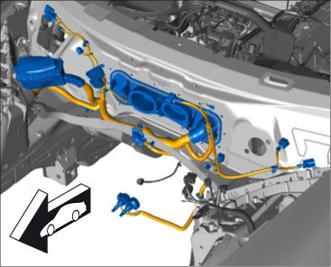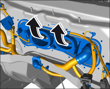 8. Remove the sleeve from the firewall and carefully remove the sub-part of the main wire harness for the plenum panel.