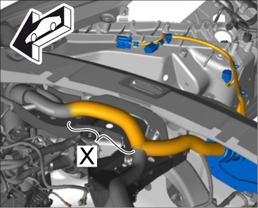 5.7. Secure the repaired area -x- to the main wire harness with tie-wraps.