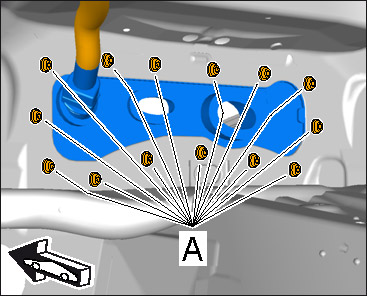 2. Loosen all 14 screws -A- on the sleeve in the interior of the vehicle.