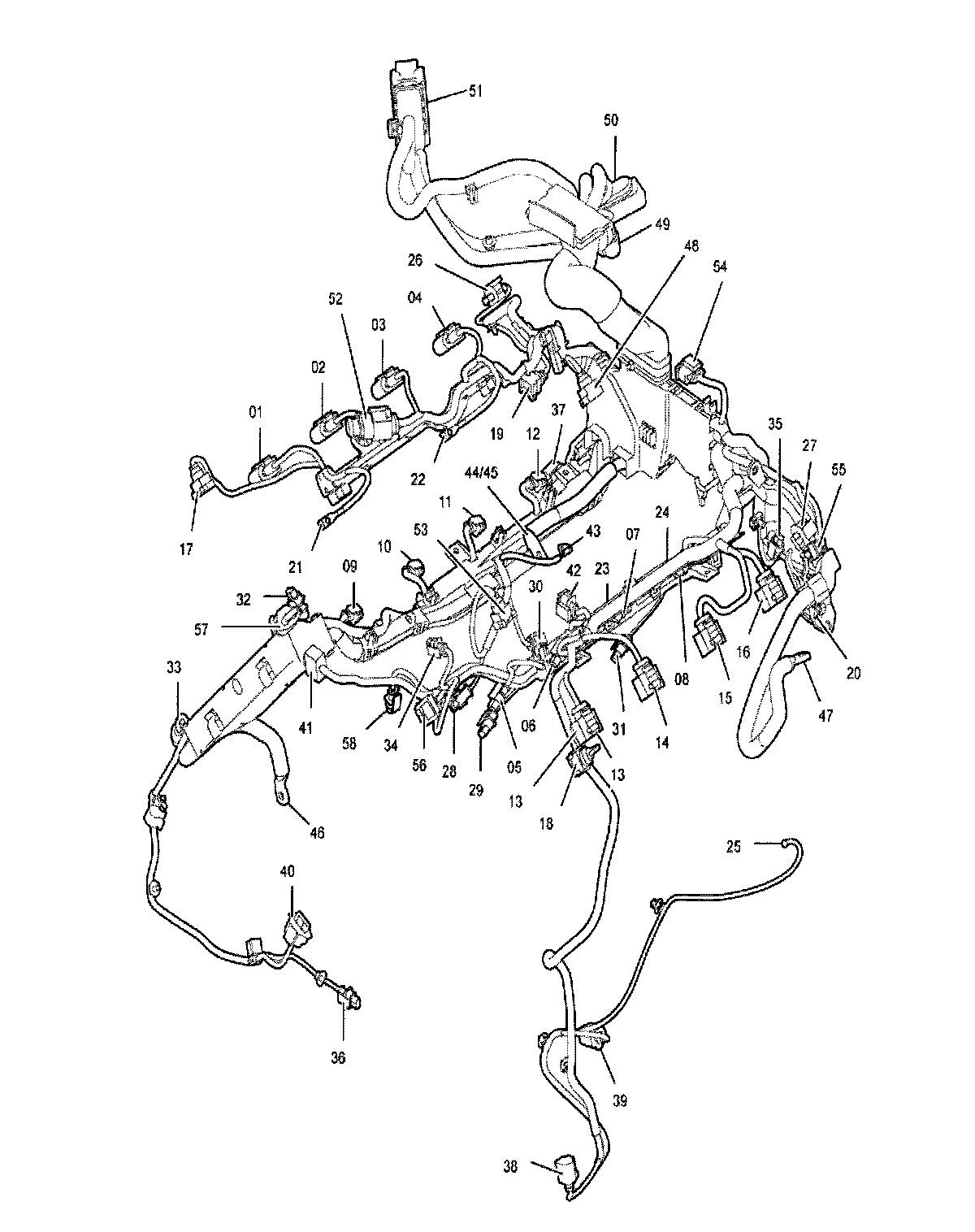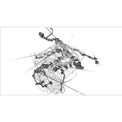 1. First lay the wire harness loosely on the engine.