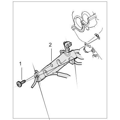 12. Unscrew fastening screw -1- at the cable duct -2-.