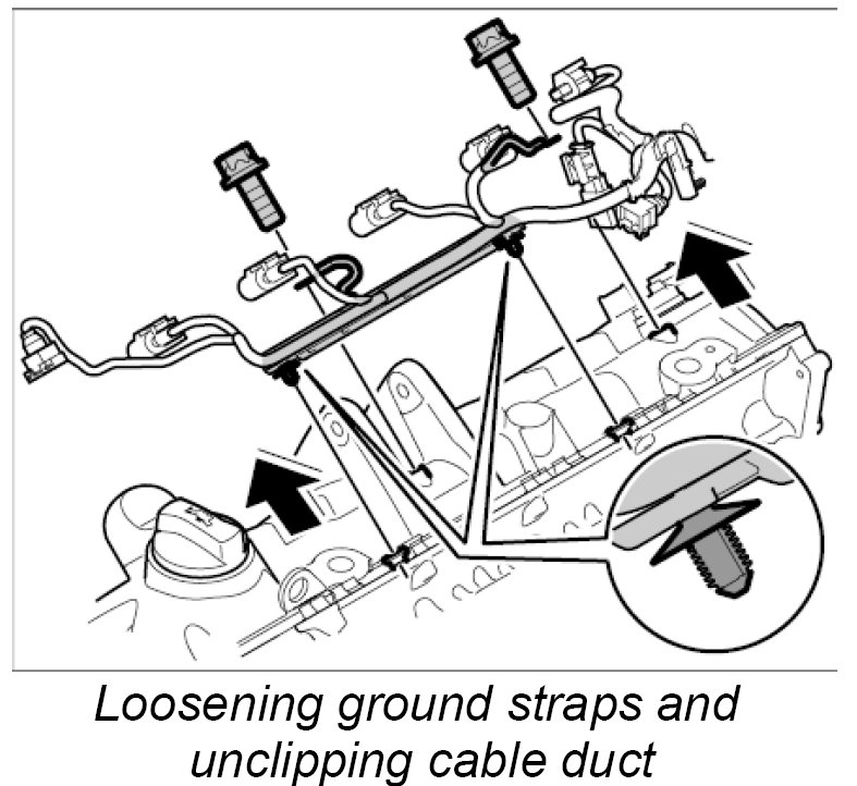 13. Unclip engine wire harness close to the high-pressure pump.
