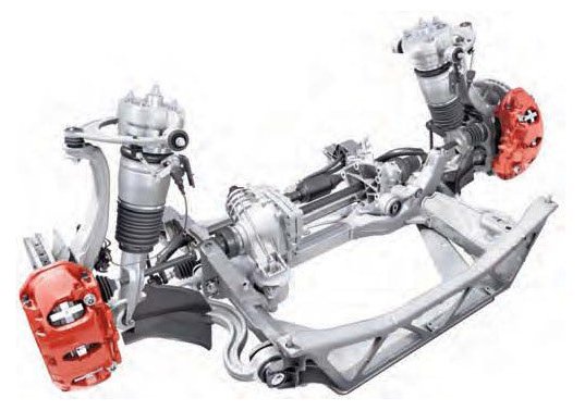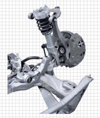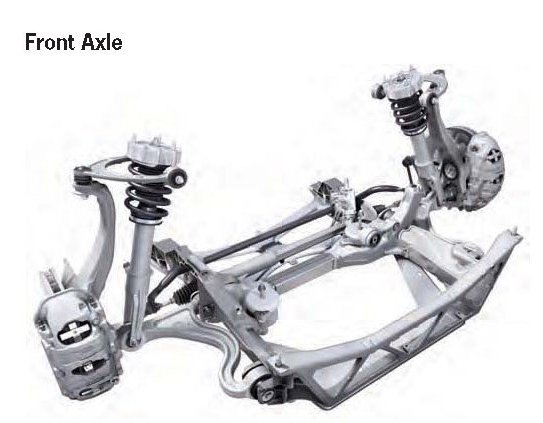 - Aluminum double-wishbone front axle with aluminum subframe.