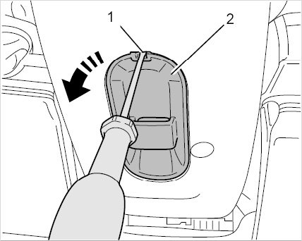 1. Insert a suitable flat screwdriver into the slit -1-.