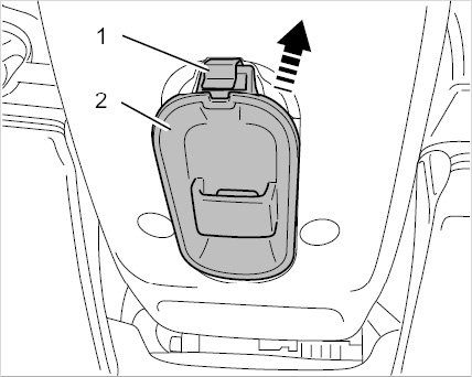 3. Pull the switch -2- down out of the way.
