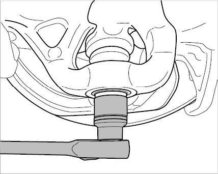 4. Remove the lock nut from the bottom ball joint. When doing this, leave the lock nut flush on the ball pin so as not to damage the thread.