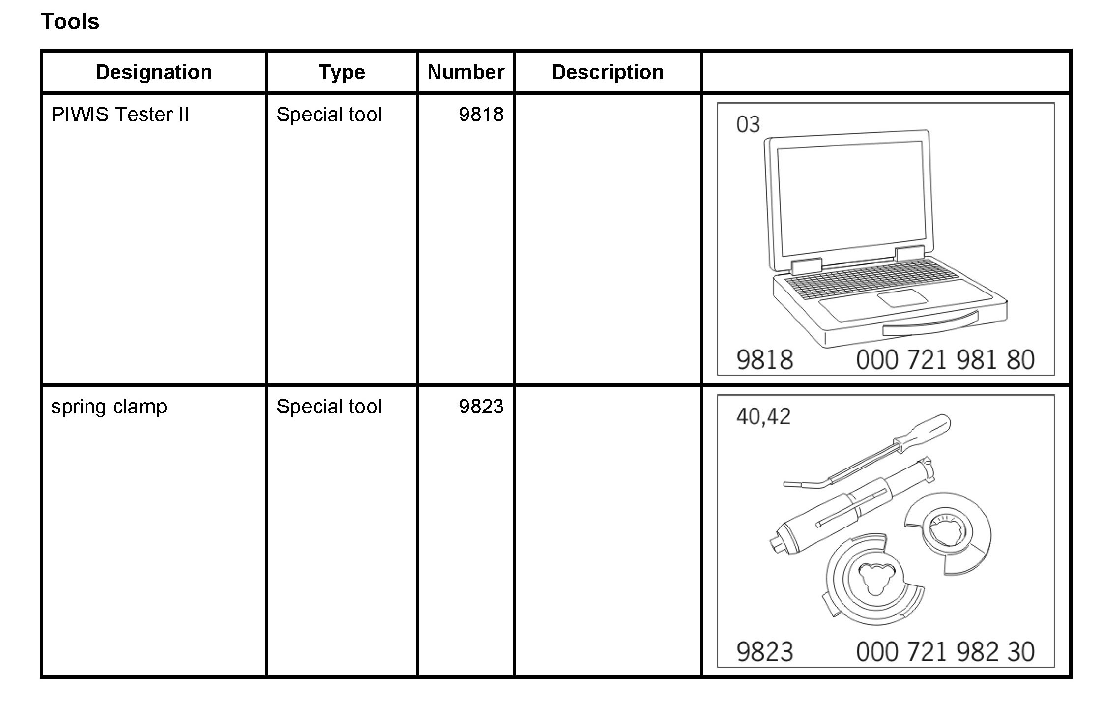 * The vehicle position is reached at the rear axle by pre-tensioning the steel spring using spring clamp 9823 to the dimension -X-.