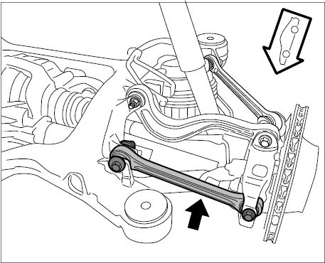 4. Release tie rod at the chassis subframe (eccentric screw) and at the wheel carrier. Remove tie rod.