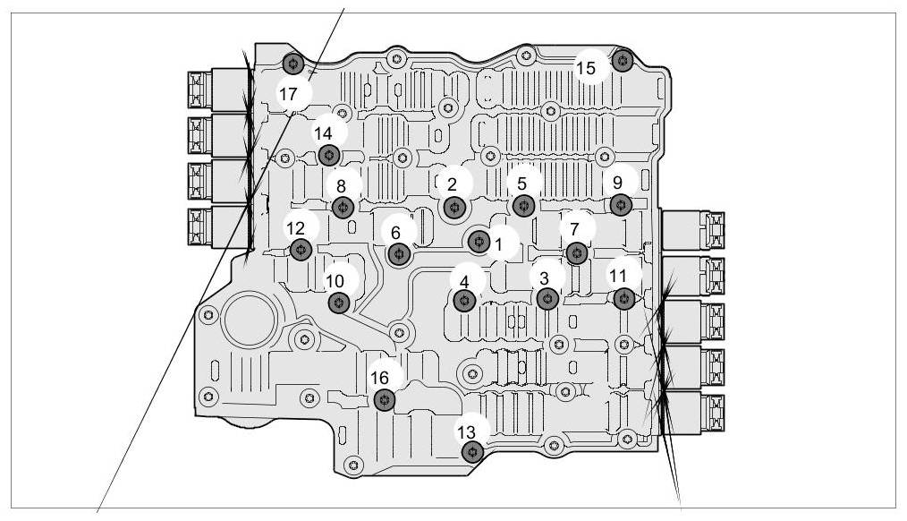 5. Tighten the hydraulic control unit screws in the specified sequence. => Tightening torque: 9 Nm (6.5 ftlb.)