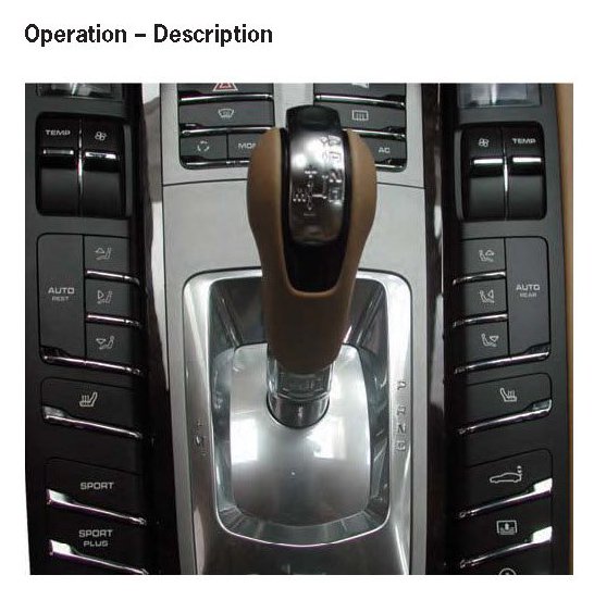 The ergonomic selector lever, familiar from Porsche sports cars, is used in the PDK. It is used to activate the basic functions: P (parking), R (reverse gear), N (neutral), D (drive) and M (manual). Manual mode is activated by tilting the selector lever to the left. The manual gate can be found here. The driver can shift up or down by tilting the selector lever forward (+) or back (-). This additional shift function provides the driver with the option, depending on the preferred way of operating, of performing a manual shift intervention on the selector lever or using the sliding switches on the steering wheel.