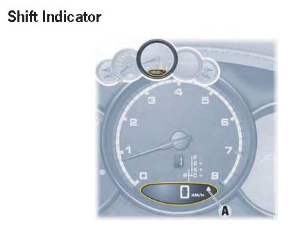 The consumption-oriented shift indicator (A) to the right of the digital speed display on the tachometer helps the driver to develop a more fuel-efficient driving style. The shift indicator lights up as a recommendation to shift up to the next gear, depending on the selected gear, engine speed and accelerator pedal position. The shift indicator is only active when "SPORT PLUS" is deactivated. When the shift indicator lights up, you should shift up into the next highest gear.