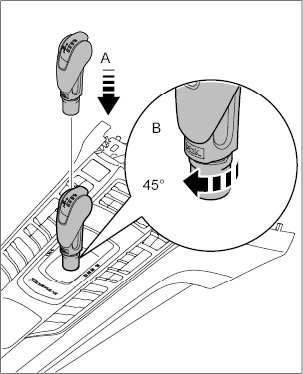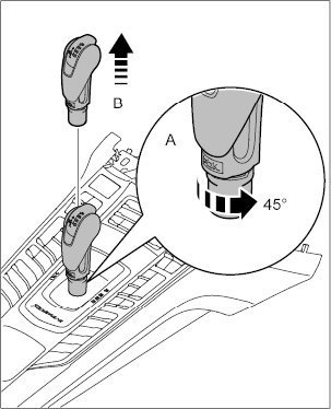 1. Twist locking mechanism at bottom of selector knob by 45 degrees in direction of arrow and pull selector knob up and off.