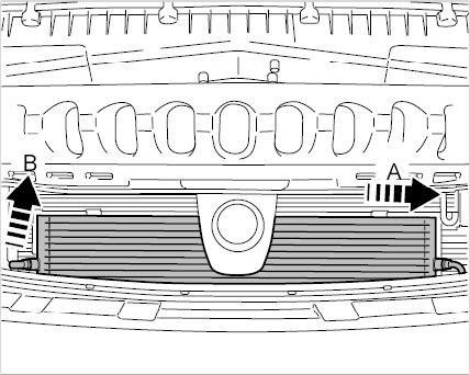 3. Guide the ATF cooler into the retaining frame -A- and press it in -B-.