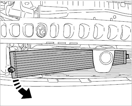 9. Release ATF cooler from the retaining frame. Press the power-steering cooler aside while doing this.