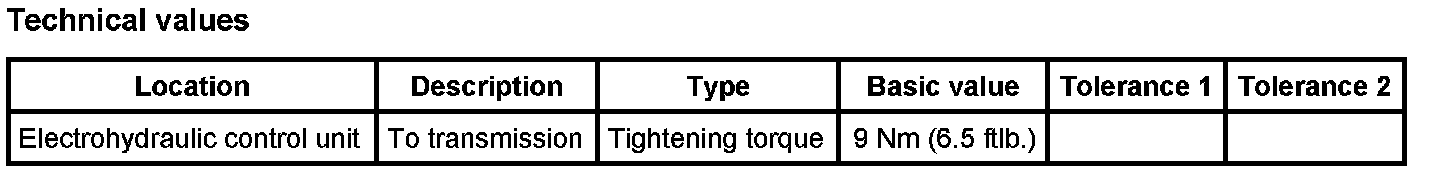 Before installing the electrohydraulic control unit, check the sealing surfaces of the control unit and the sealing surfaces of the transmission for damage and soiling. Damaged or soiled parts must not be used. Ensure absolute cleanliness when installing the electrohydraulic control unit.