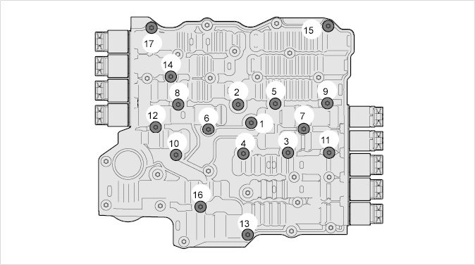 5. Tighten the hydraulic control unit screws in the specified sequence. -> Tightening torque: 9 Nm (6.5 ftlb.)