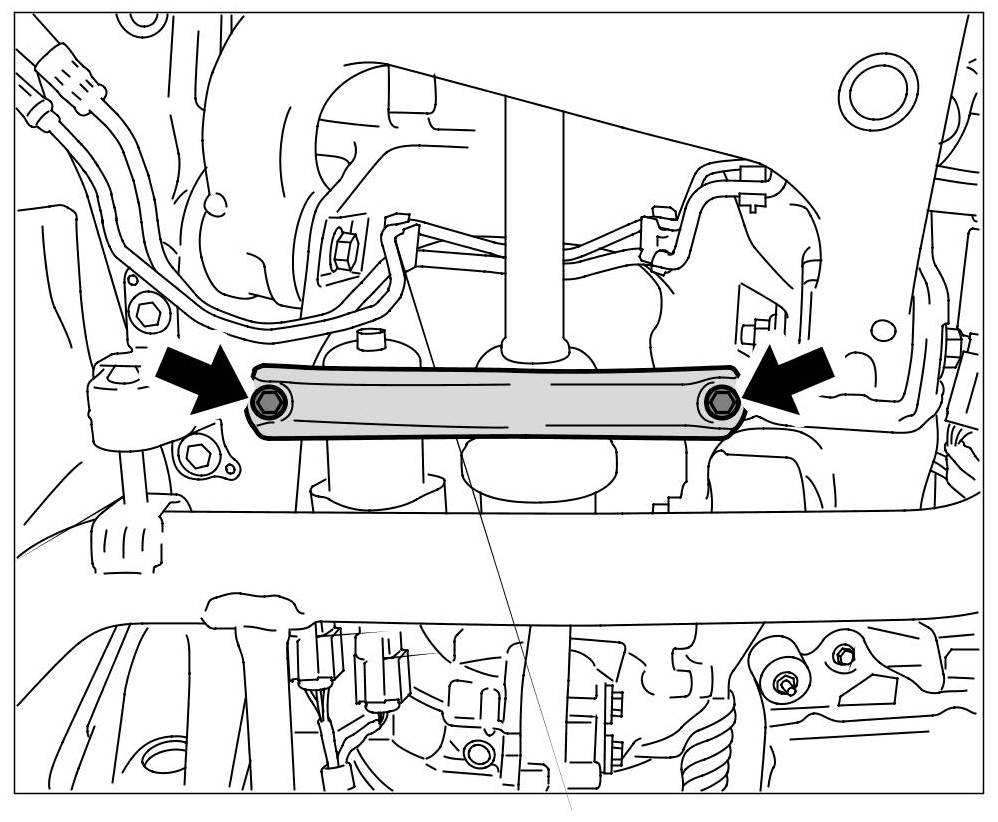 5. Install strut on rear axle housing using new screws. => Tightening torque: 33 Nm (24 ftlb.)
