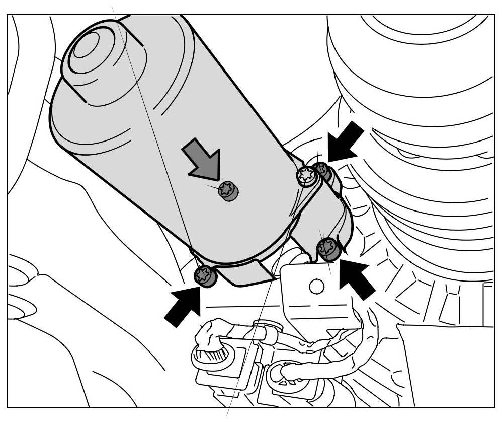 3. Screw in 4 fastening screws -arrows- for securing servo motor to transmission. => Tightening torque: 10 Nm (7.5 ftlb.)
