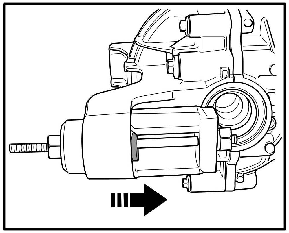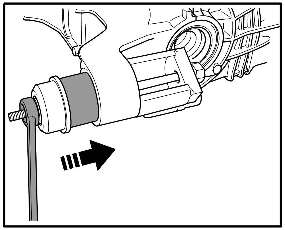 1. Mark rubber mounting with respect to transmission housing in installation position -arrow-.