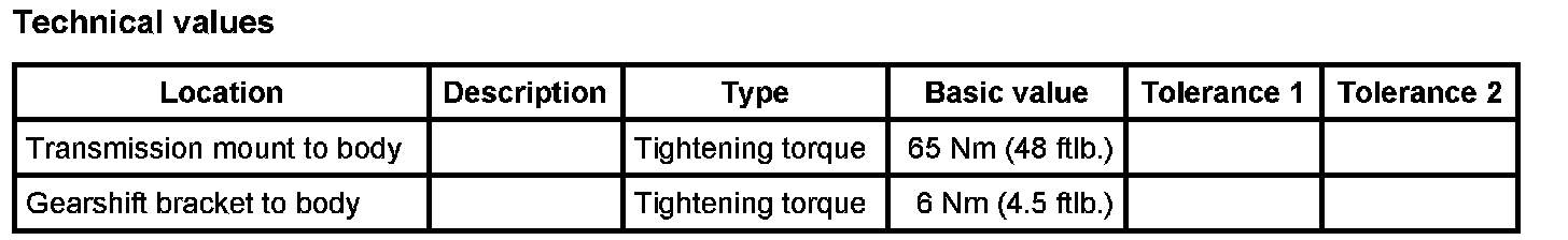 12. Screw in fastening screws for transmission support. -> Tightening torque: 65 Nm (48 ftlb.)