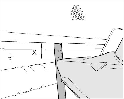 12. Measure excess operating cable -X- at the cable end and write it down. The dimension -X- is needed for pre-positioning when installing.