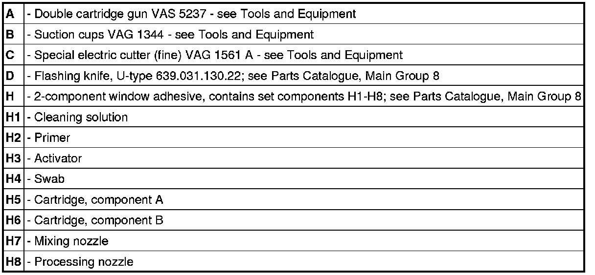 Tools and materials - Porsche double-cartridge window adhesive