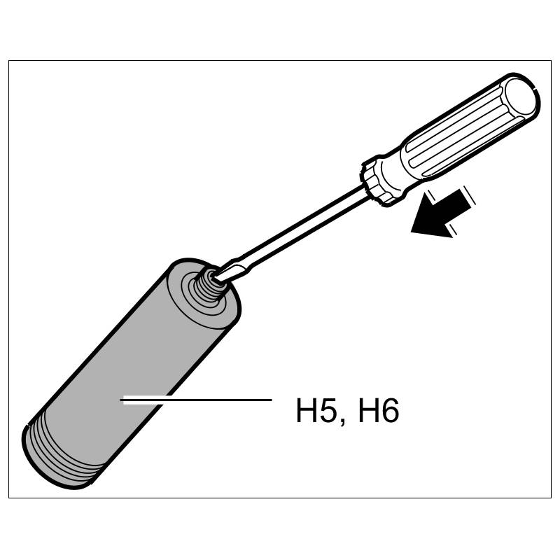 1.1. Pierce the membrane in the nozzle connection of components A and B (aluminium cartridge) -H5- with a screwdriver and extend the opening. Remove flanged cover on end of cartridge.