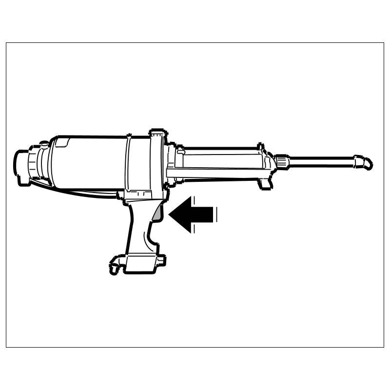 4.1. By activating the valve -arrow- allow the pressure piston to move out slowly until both components of the bonding material emerge at the mixing pipe.