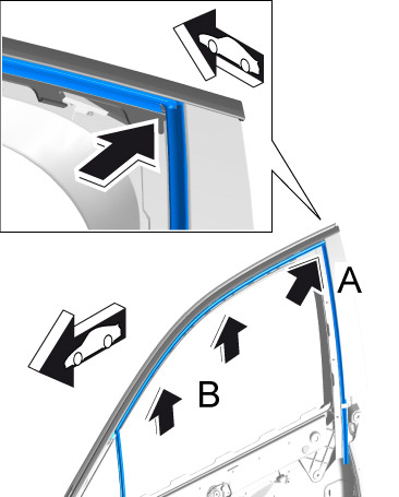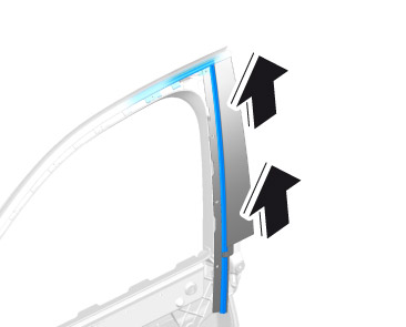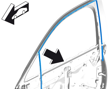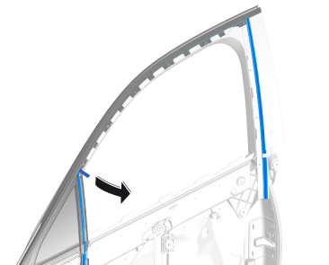 6. Install additional window frame seal. -> 576655 Replacing additional window frame seal - section on "Installing" 576655 Replacing Additional Window Frame Seal