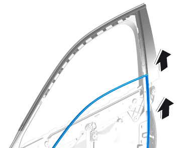 5.3. Position the window guide at the top front corner and align it to the rear.