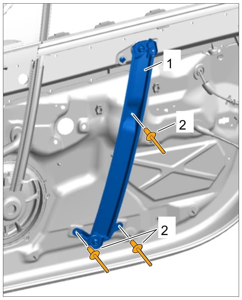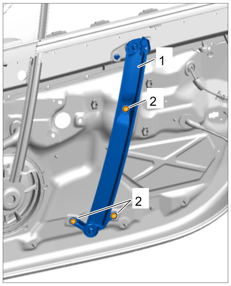 1.3. Fit complete guide rail -1- in place using new rivets -2 and 3-.