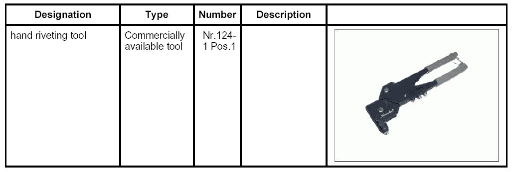 3. Secure the moulding at the rear with rivets using a hand riveting tool Nr.124-1 Pos.1.