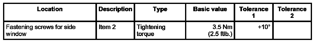 - Tightening torque: 3.5 Nm (2.5 ftlb.)+10°.