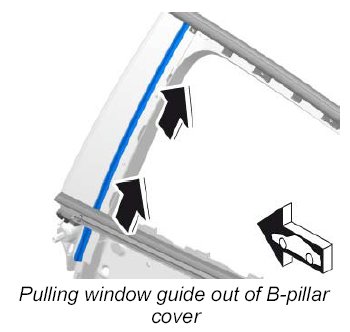 3. Pull front window guide out of the B-pillar cover.