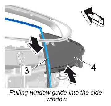 6. Pull window guide -3- into the side window -4- .