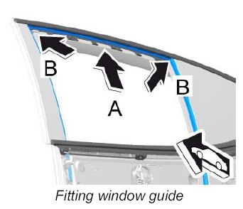 8.1. Press middle section of window guide into the corners -B- .