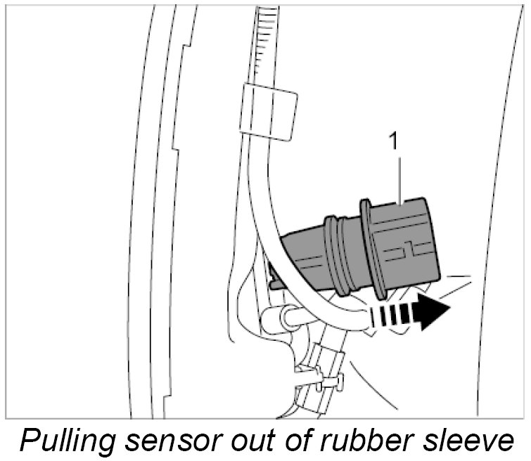 2. Pull the sensor -1- out of the rubber sleeve by turning it back and forward slightly.