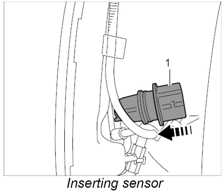 1. Insert the sensor -1- into the rubber sleeve by turning it back and forward slightly.