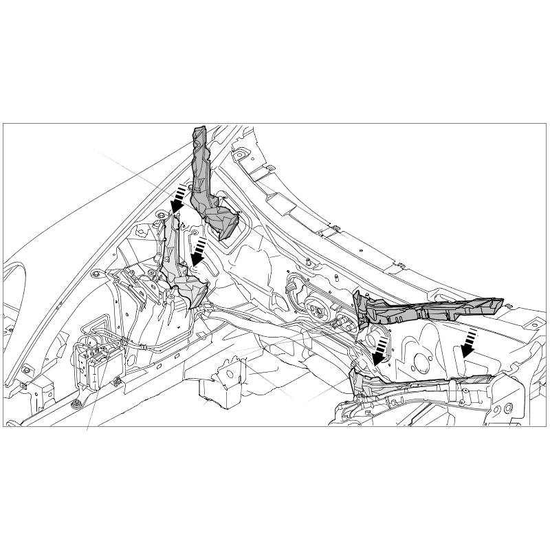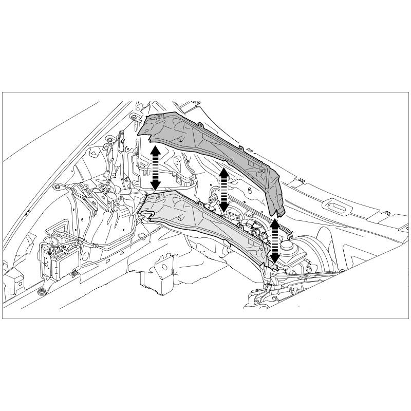 2.1. Get another mechanic to help you move the centre plenum panel wall at the bottom into installation position and press on the seal. Align the plenum panel wall.