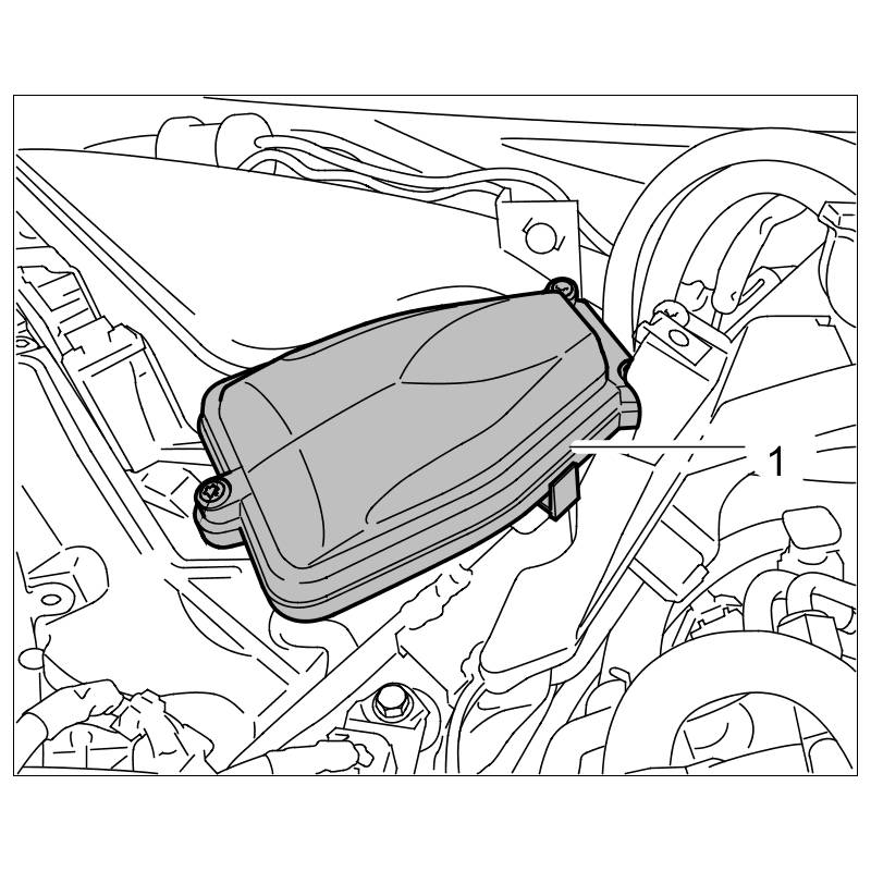 4. Detach relay box from the strut. To do this, press the plastic hook -1- and set the relay box aside.