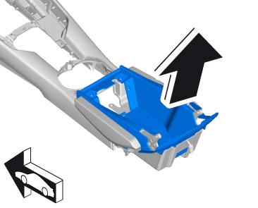 2. Remove lid for oddments tray. -> 68481900 Lid for oddments tray - section on "Removing" 68481900 Removing and installing lid for oddments tray
